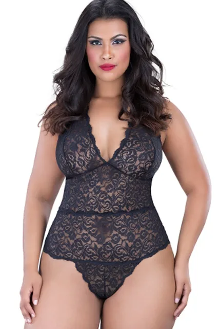 2017 New Women Lace Sexy Lingerie Hot Babysuit Sexy Teddy Perspective Deep V Neck Underwear Sexy Costumes Plus Size XXL XXXL