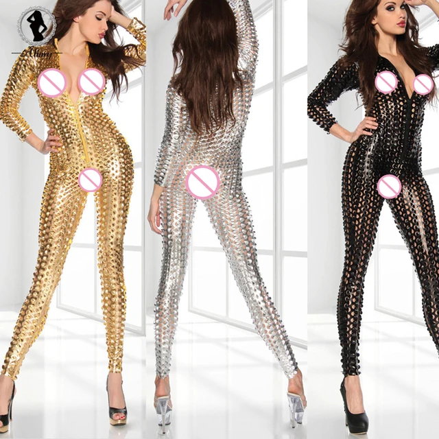 2018 New sexy lingerie hot 3 colors hollow out deep_v zipper leather sexy costumes Pole dancing clother clubclub erotic Lingerie