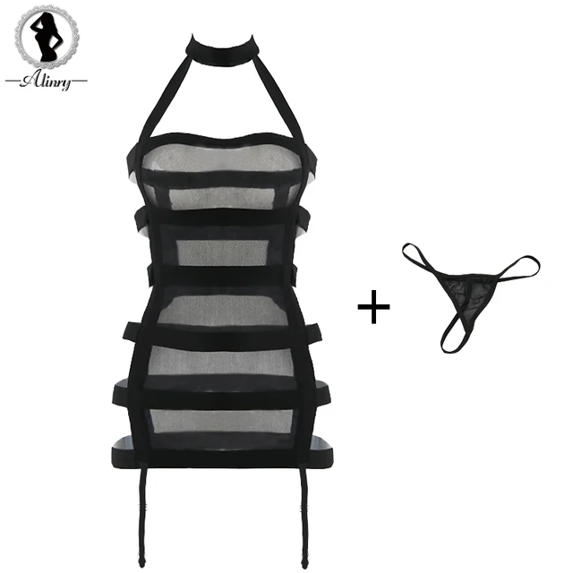 ALINRY New sexy lingerie hot women bandage underwear sexy erotic lingerie dress black mesh babydoll sexy hanging neck costumes
