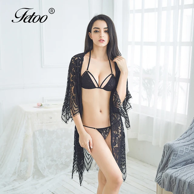 Fetoo Sexy Lingerie Lace Transparent Night Babydoll Dress 2018 New Sleepwear Lingerie Sexy Hot Erotic Three-piece Sexy Costumes
