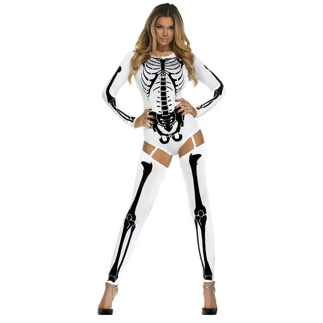 Halloween Costumes For Women Clubwear Sexy White/Red Bad To The Bone Skeleton Costume LC8948 Fantasias Femininas Para Festa