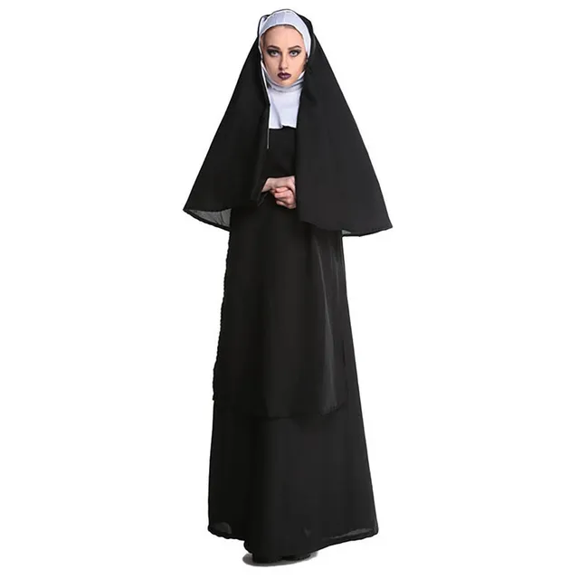 M-XL New Virgin Mary Nuns Costumes for Women Sexy Long Black Nuns Costume Arabic Religion Monk Ghost Uniform Halloween Clothing