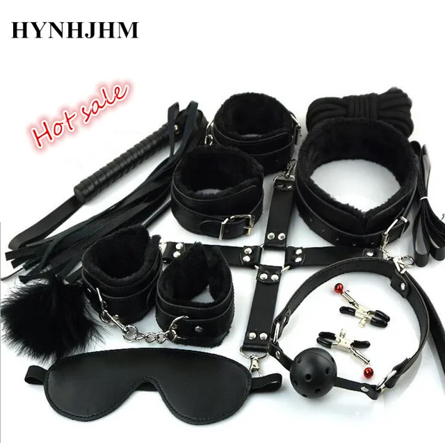 New Sexy Lingerie Bondage Set 10 Pcs/set Sexy Product Toys Hand Cuffs Footcuff Whip Rope Blindfold Couples Erotic Lace costumes