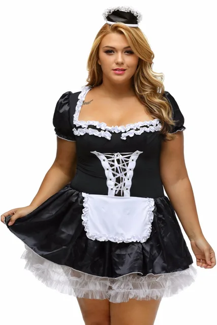 S-6XL Black Satin And White Lace Fancy Mini French Maid Dress Cosplay Sexy Maid Costume Plus Size Halloween Costumes for Women